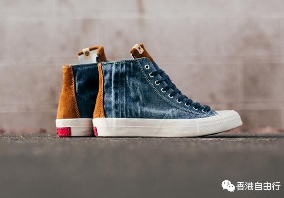 本季,日系潮牌 visvim 为旗下的人气款式 Skagway Hi 添加了一组主打丹宁元素的 Skagway Hi "Denim" 系列。设计师为经典的 Skagway Hi 高帮鞋型引入了清爽的丹宁鞋面,并且在鞋舌以及后跟部分点缀了些许亮色麂皮,再搭配上金属孔眼、浅灰色缝线以及浅灰色 Vibram 下底,成功打造出一种清新且俏皮的气质,十分适合春夏季节的穿搭。此系列定价630美元=4883港元。