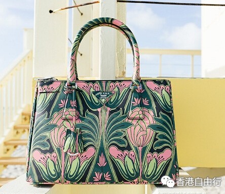 此季的prada推出的全新Galleria系列包袋用优雅的粉色郁金香来装饰包面,令人陶醉不已。粉色的郁金香配有绿色的叶子和背景,Prada此次也打破以往的单调的色彩,当然如何驾驭它真的需要思考一下。暖意来临,整个花卉图案与春夏搭配完美融合。