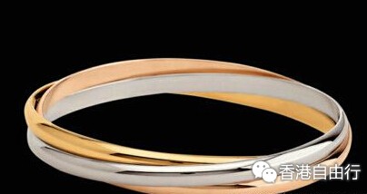 具有远见卓识的路易・卡地亚(Louis Cartier)先生于1924年设计出Trinity戒指。三个环圈和谐地交织在一起:玫瑰K金代表爱情,白K金代表友情,黄K金代表亲情。三色金系列设计设计独特,风格典雅,内涵丰富,如今已成为承载温柔爱意的经典,更是贴合肌肤的珠宝饰品,“Trinity,你的故事”。