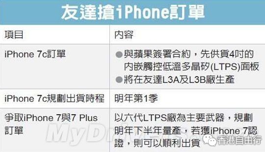 现在台湾媒体给出的消息称,友达光电已经与苹果合作,前者将供应iPhone 7C所用的4英寸屏,据悉他们会在明年Q1开始出货。