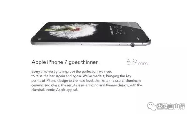 这款iPhone 7采用跟以往一样的三种颜色,屏幕尺寸方面,与iPhone 6 Plus一致,为5.5英寸大小!机身厚度仅为6.9mm,完爆6P的7.1mm!