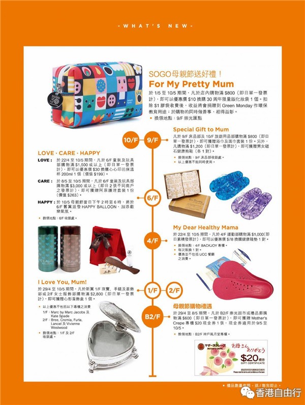 香港购物:SOGO铜锣湾店包包、化妆品套装、鞋服、配饰、美食等母亲节特集(含价格)