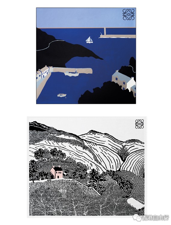 其中两款的精品,(上) 康沃尔港丝巾(90x90) $3750、(下) 坎布里亚的粉红小屋沙滩毛巾 $8800