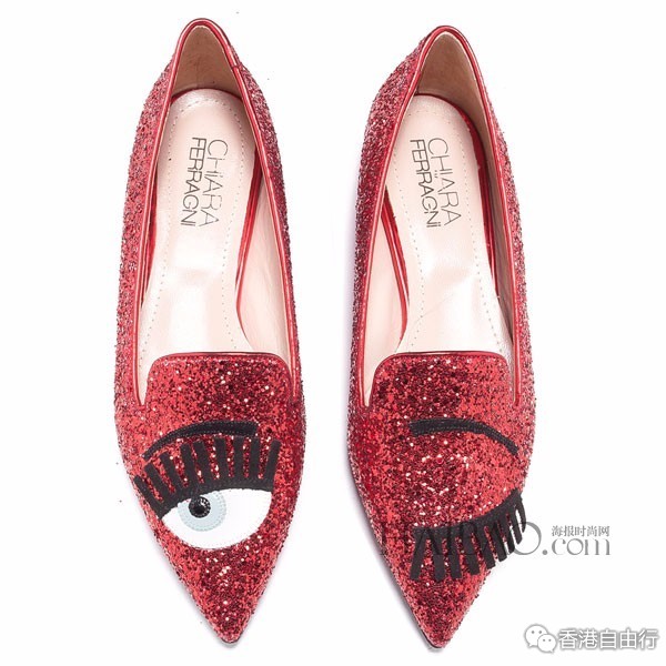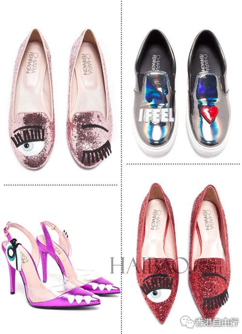 来自意大利的时尚博主嘉拉·法拉格尼 (Chiara Ferragni) 除了是人气正旺的搭配达人,其创办的同名鞋履品牌也是广为人知。Chiara Ferragni最新发布的2015春夏系列鞋履,可爱俏皮萌趣十足。除了经典的眨眼、红唇等元素还将汉堡薯条热狗等食物图案印在鞋子上,并且运用了大量的高饱和色彩。在该系列鞋履中,亮片依旧是主打元素,为了体现设计师更富有创意还用了丝绒、镭射等元素,所以不管是高跟鞋还是平底鞋都趣味十足。
