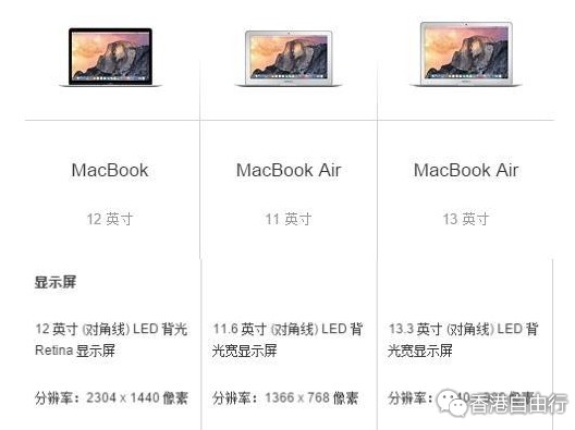 屏幕方面,MacBook采用了12英寸、2304*1440像素的Retina视网膜屏,像素密度更高,显示效果更为细腻。而11英寸和13英寸MacBook Air的屏幕分辨率则分别为1366*768像素及1440*900像素,均是较为落后的配置,靠近屏幕会比较容易看到像素点。显然,在手机都普遍实现1080P全高清分辨率的时代,MacBook的屏幕配置更吸引人一些。