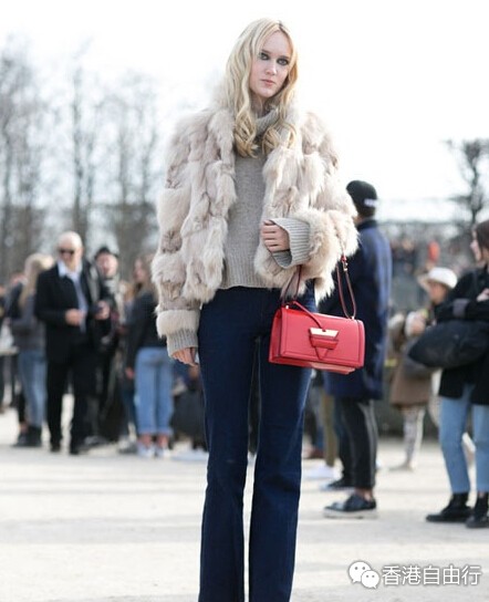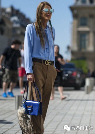 Loewe手袋的魅力越来越大,上一季是结构感强的Puzzle俘获人心。这一季,轮到Barcelona三角包鲜亮登场,深得时尚界权威人士的青睐。在近几次的时装周街拍上,红色、绿色、蓝色、焦糖色的高饱和度糖果色Barcelona三角包的出镜率相当高。别致的三角扣设计令普通的长方形肩包瞬间出挑,配上不同材质的皮革,提供多样的选择性和搭配度。Anna Dello Russo就至少背了三只不同配色的Barcelona三角包上街。