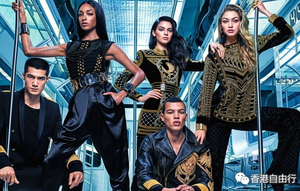 H&M X BALMAIN广告照找来了当红模特儿大堆头式制作,Kendall Jenner、Gigi Hadid、Jourdan Dunn全是时尚界熟悉的名字,加上两位男模郝允祥和Dudley O’Shaughnessy,在铁路车厢一样的背景前,穿上以黑、白、金为主色的系列,缀满亮片钉珠的deep V裙子女人味十足,充满浓浓的BALMAIN风格;还有充满八十年代风格的粗腰带加大红大绿裙子。说真的,此系列并不易穿,但却很适合年尾参加各种派对时华丽登场!还有浮夸而抢眼的手镯和戒指都是必扫佳品,各位绝对要留意了!