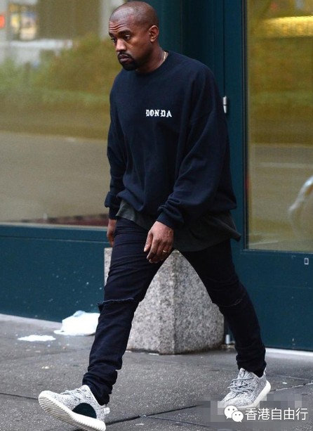 Kanye West脚踩 Yeezy 350 Boost现身街头。