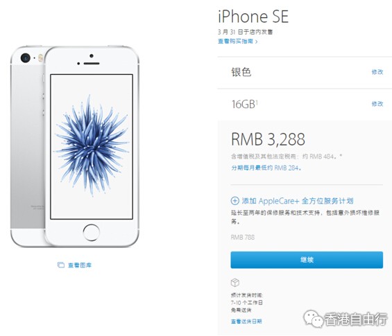 另根据苹果(中国)官网显示的信息来看,用户在官网上购买iPhone SE可需要等待7~10个工作日的配送时间。此外,京东商城、苏宁易购等第三方网购平台也提供国行iPhone SE的购买。