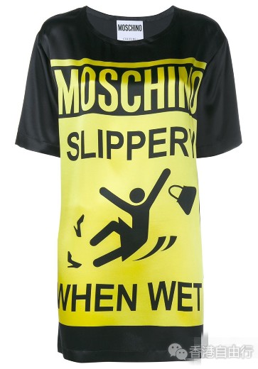 本季MOSCHINO延续一贯搞怪鬼马的设计风格,再次让人大开眼界。“小心地滑”的警示标牌贯穿覆盖着T恤裙,以明黄色的标示配上黑色字母,趣味且醒目的视觉效果吸睛感十足;而另一款于腰间缀有工具装饰的款式优雅大方之余亦充满不一样的设计感;色彩跳跃的亮橙色卫衣前短后长,修饰身形的同时又具个性。这些大胆且充满玩味的创意已在最新的MOSCHINO春夏女装裡,快來为你的早春新品加入一丝趣味吧!另外,想于低调造型上加点心思的潮人,也可以从小件的包鞋入手点亮全身。