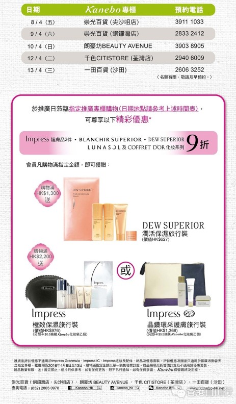 香港打折:Kanebo Coffret D’or 春日粉红推广会购物优惠(至16年4月13日)
