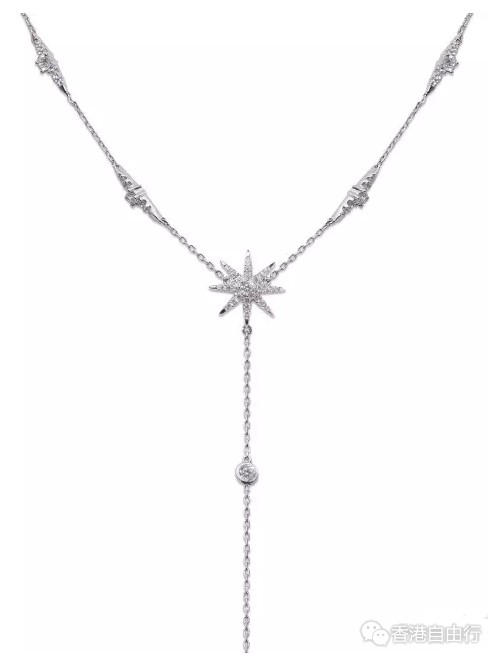 镶满闪亮垂饰的套索颈链以人手用纯银打造,配以镀白金表面。