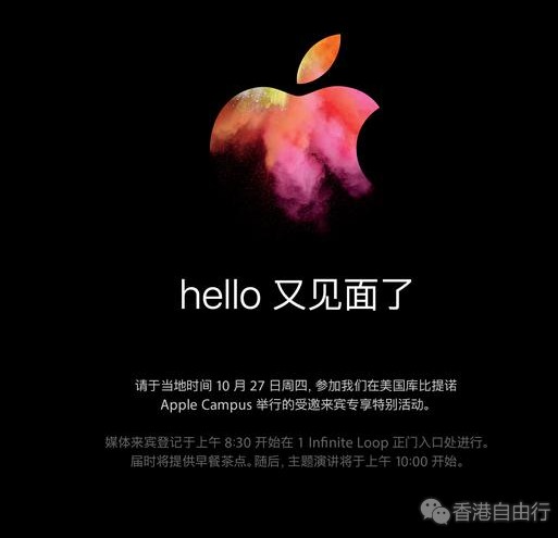这次邀请函的主题是“hello 又见面了”,并且用浓墨重彩修饰了苹果logo,每次苹果邀请函都暗藏玄机,而“又见面了”至少暗示了旧产品的革新,与之前的传闻多少有点关联。