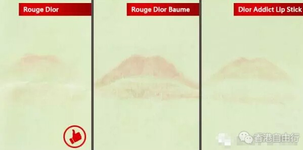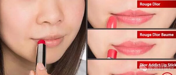 逐一把唇膏涂在唇上,以观察红唇膏的出色度。想红唇效果较实色的话,可选用Rouge Dior Baume系列,色泽十分鲜艳,但想出色而滋润度足够,还是Dior Addict唇膏较为优胜。