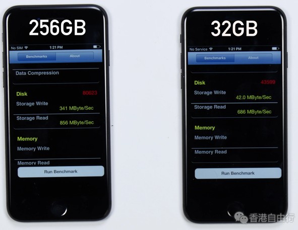 实际上,有一个你是看不到的很大区别:256GB的iPhone 7写入速度比32GB的快。其他测试也有显示,128GB的iPhone 7在写速度方面比32GB版本的快。这意味着,有更多存储的iPhone,大文件的传输速度比入门级iPhone 7快得多。