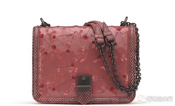 该款手袋以柔嫩光滑的亮面羊皮精心打造,凸显皮革的天然魅力与极致亮泽,并饰以纷繁复杂的手工刺绣彩色花卉图案;此外,搭配富有细腻纹理的水蛇皮肩带和边缘设计,相异材质的混搭被运用地恰到好处。