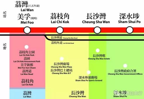 深水埗运动场不在深水埗站,而是在荔枝角站;长沙湾广场、长沙湾巴士总站不在长沙湾站,而是荔枝角站;荔枝角公园游泳池也不在荔枝角站,而是在美孚站。word妈,简直要被绕晕了。