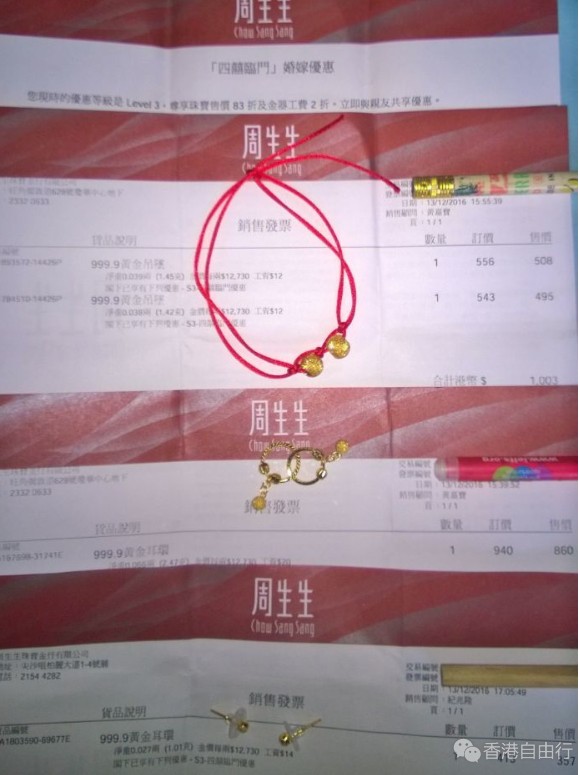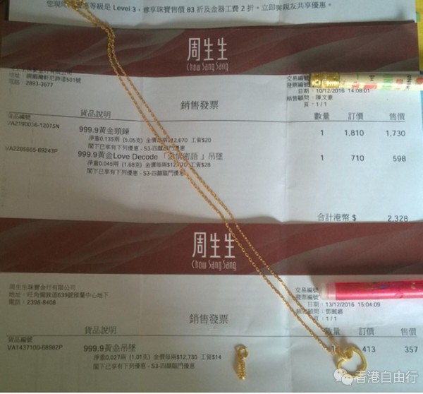 香港晒货:圣诞前HK买周生生黄金归来 附价格小票