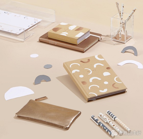 随着新一年的来临,kikki.K期望能够透过全新的Escape The Ordinary 系列鼓励大家突破自我、拥抱新思维,重新发掘生活的美好。此系列备有日记簿、书桌配件及各式文具让您能够好好布置工作空间。以柔和色调及简约的几何图案作为设计基调,并配上手工印刷的白色墨水,最后以铜箔作结。独特的设计让你突破框框,重新出发!