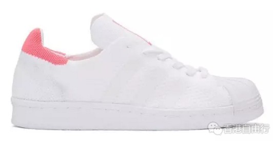 该鞋款的鞋身是全白的Primeknit 材质,而编织的织纹线条则丰富了视觉效果,鞋头保留了起最经典的“贝壳头 ”,鞋背和鞋舌则用一抹橙红色点缀,既简约又有少女的活泼感,和春天十分的合拍。该鞋款的预计售价港币940元