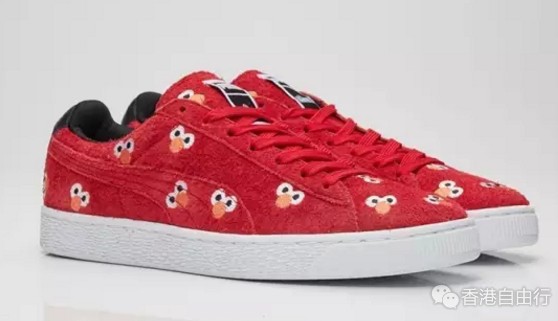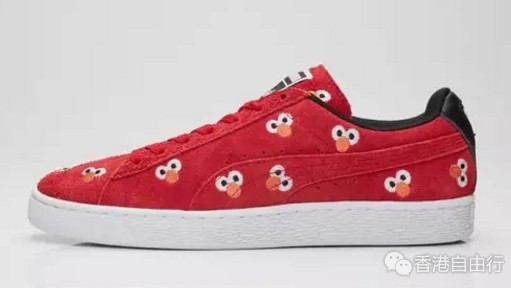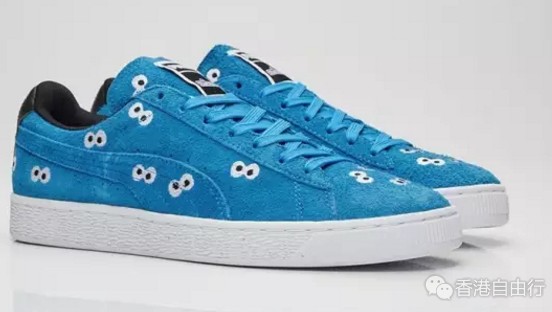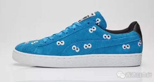 Puma和芝麻街联乘推出的两款新版球鞋,采用了Cookie Monster 的招牌蓝色与属于 Elmo 的鲜红色, 麂皮的鞋面上面印有两位卡通人物的眼睛,超可爱!
