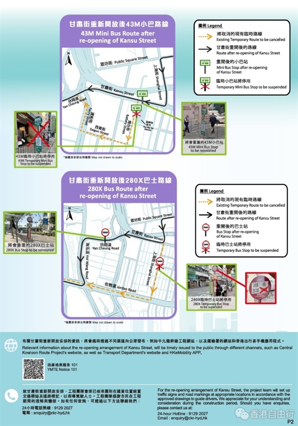 部分九巴第280X号线的巴士站,以及九龙专线小巴第43M号线的小巴站亦会重置。相关营办商会张贴告示,通知乘客相关安排。