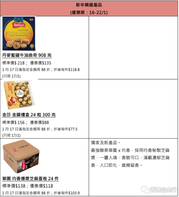 1月18日则为网店限定优惠,网店买满HK$888,即可享有92折优惠;买满HK$1088或买满HK$100并选择「网购店取」,同样可享88折。