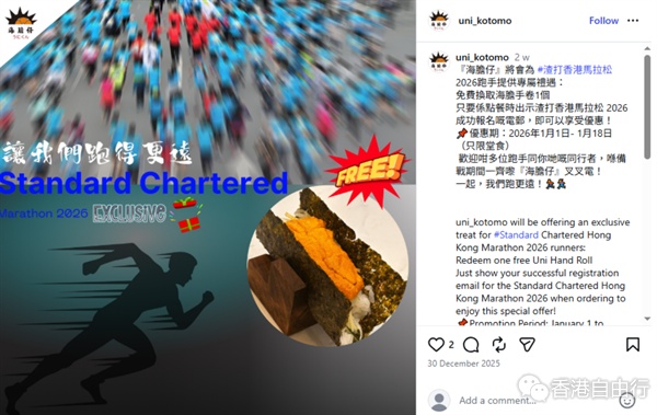 「渣打香港马拉松2026」(渣马)将于周日(18日)举行,这项本地体坛盛事今年近12万人报名创新高。今年有超过700间食肆参与「助小店 撑跑手」计划,加上不少商场、商户举办特色活动炒热气氛,部分店舖更推出跑手专属优惠,不容错过!
