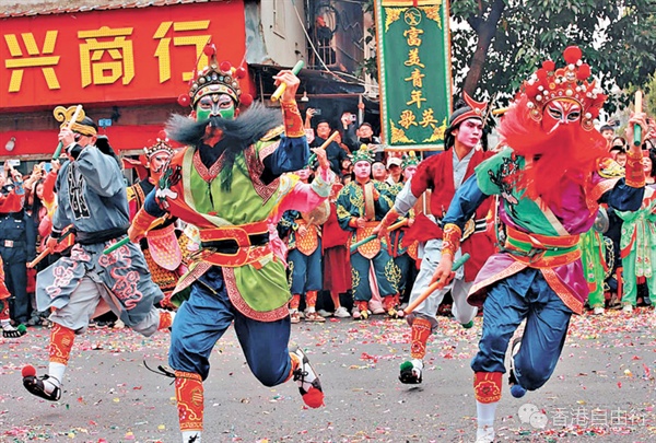 (香港文汇报记者 张弦)英歌,又称「鹰歌」、「鹦哥」、「唱英歌」或「秧歌」,是一种融舞蹈、南拳套路、戏曲演技于一体的民间广场舞蹈,表演气势豪壮,气氛浓烈,流传于广东、福建等地,有歌颂英雄的含义,相传已有300多年的历史,是当地民众尚武习俗的变体或搬演《水浒传》故事。