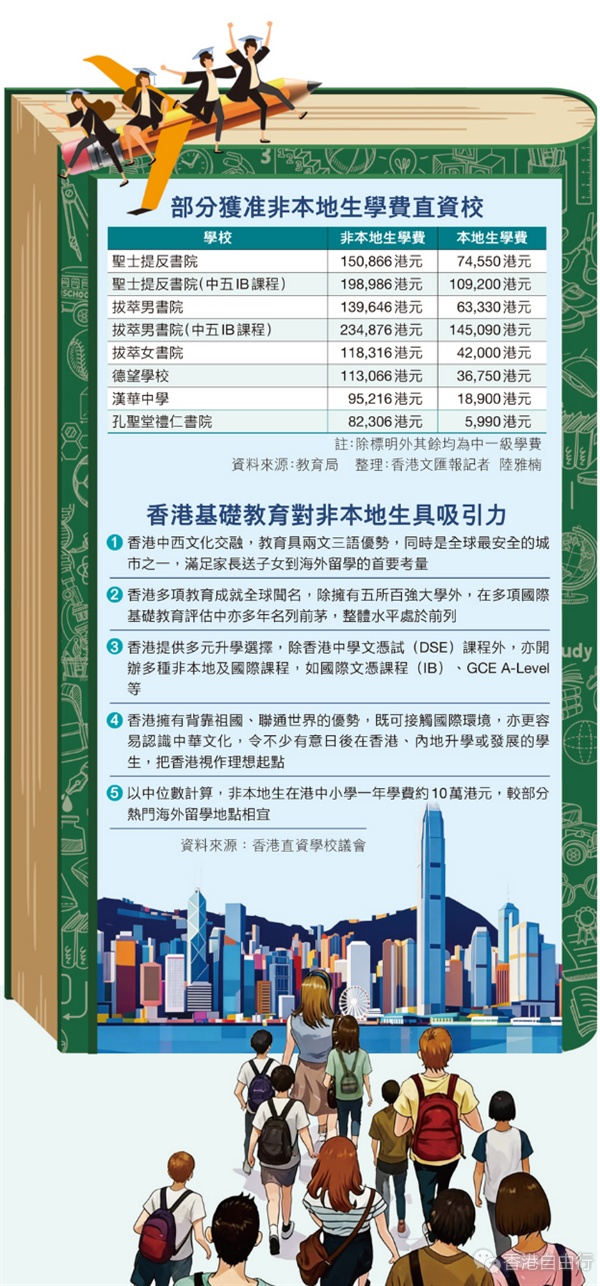 今年是国家「十五五」规划谋篇布局之年,香港正积极发挥多方面独特优势,融入国家发展大局。为配合教育强国战略,特区政府近年大力推动「留学香港」品牌建设,今年9月新学年更正式推出「直资扩容」计划,将建设国际教育枢纽的目标由高等教育延伸至基础教育层面。香港直接资助学校议会昨日宣布,将于本周五(3月27日)首次组团前往泰国曼谷及马来西亚吉隆坡,介绍本港直资学校的办学特色,期望「说好香港教育故事」,吸引更多海外学生及家庭来港升学和发展,贡献国家所需。非本地生自费入读港直资校,一般学费约十多万港元,较部分热门留学地相宜,连同宿舍及生活费,每年在港留学开支约32万港元至35万港元。