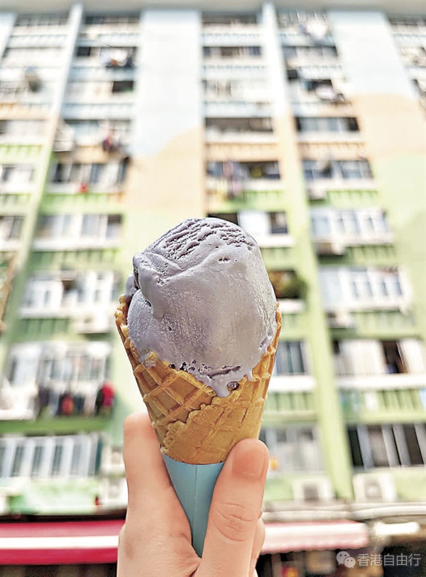 拍完照后,沿楼梯下来就到南山商场的平台,这里只有零星几间舖营业,白底红字的手写招牌,看起来颇有历史。商场内没有空调,只有几台风扇,还未到夏天,已经能感受到闷热。不过走到平台外围,就有一家售卖雪糕的「C+屋」,悭妹迫不及待买一个雪糕消暑。菜单颇为震撼,一眼望过去竟然有32款不同口味的雪糕球可选,当中更有「南山豆腐」、「芝麻街」、「石板街」、「啤梨」这些闻所未闻的口味。一颗紫心香芋味单球8元,配上4元的特大珍宝甜筒,大件夹抵食。旁边还放有一个怀旧零食架,低至1元就有得食,真是穿越回童年。