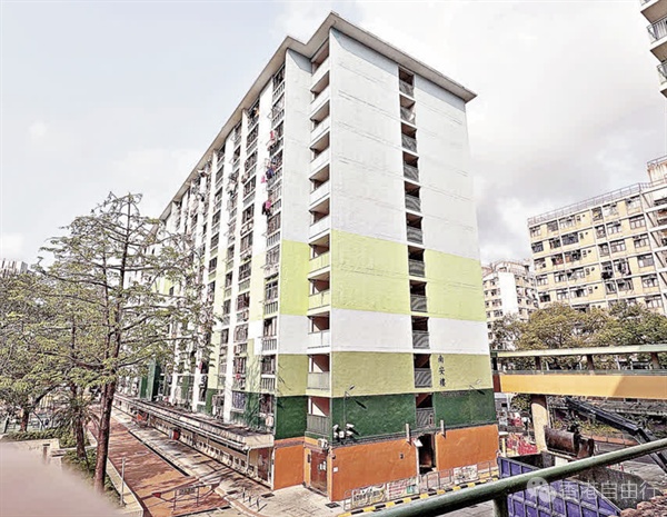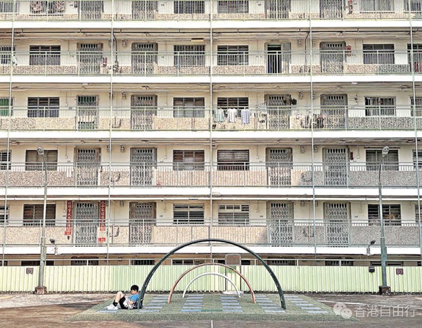 于1977年落成的南山邨,至今有近50年的历史,当中的「南山」取自「福如东海,寿比南山」,寄託着当时人们福寿绵长的愿望。建筑外牆被粉刷成清新的蓝、绿、橙色,为千篇一律的钢筋水泥建筑增添活力。南山邨最为人所熟知的一定是南乐楼的打卡点,这个宽阔的空中平台被三座大楼包围其中,左右两边分别设有旧式儿童游乐场,有一种闹中取静之感。当中三个由小至大排列的拱形铁梯,与背后的大楼一同形成完美的对称结构,十分出片。
