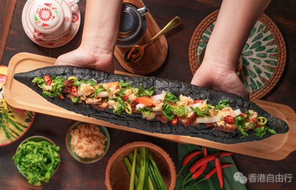 全新瞩目的6人分享「越式滋味拼盘」以巨型竹编托盘呈献多款特色前菜,包括顺化浮萍糕、鲜虾牛油果米纸卷、香芋猪肉春卷、炭烧鸡肉串烧及越南蜜柚烧虾沙律,并可选配越式香茅炸虾卷或越式槟榔牛肉卷,以及越式生牛肉他他或越南鲜虾猪肉煎薄饼。仅限于尖沙咀圆方店独家供应,定价为港币688元及738元。