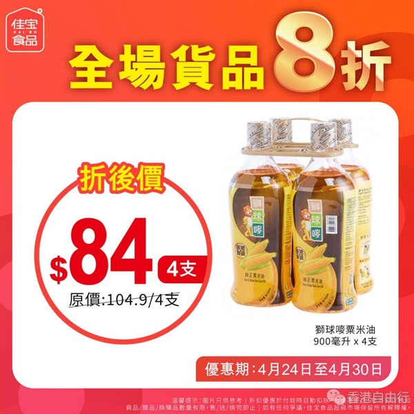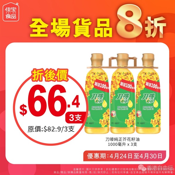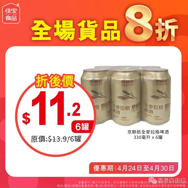 今日(24日)起连续7日,佳宝食品超级市场同你悭到尽。新鲜蔬果、肉类海鲜、粮油杂货、饮品啤酒全场一律8折。去佳宝笋货好货尽情扫,把握优惠就最着数。